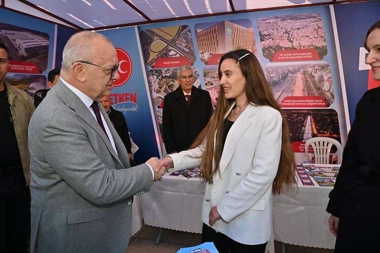 Manisa Büyükşehir Belediye Başkanı Cengiz Ergün, Milliyetçi Hareket Partisi Grup Başkanvekili ve Manisa Milletvekili Erkan Akçay ile birlikte Valilik binası karşısında yer alan Bülent Koşmaz Parkı'na kurulan Milliyetçi Hareket Partisi seçim standını ziyaret etti.