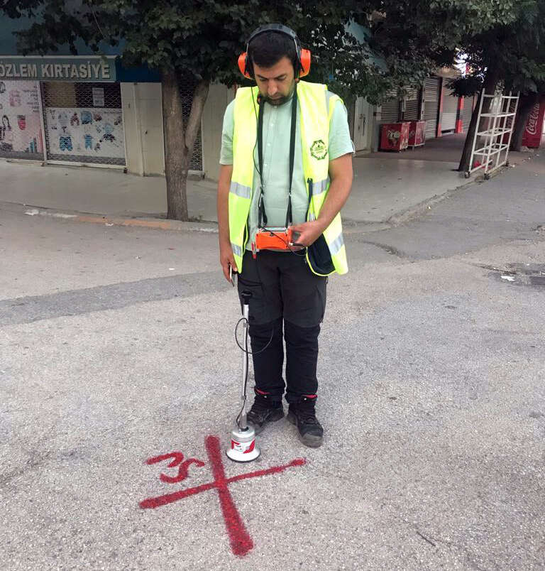 Basınç testi, step test ve akustik cihazlarla yerin altında tespit edilen ve yüzeye çıkmayan şebekedeki fiziki kaçakları tespit eden ekipler, bu sayede su kayıplarını önlüyor.