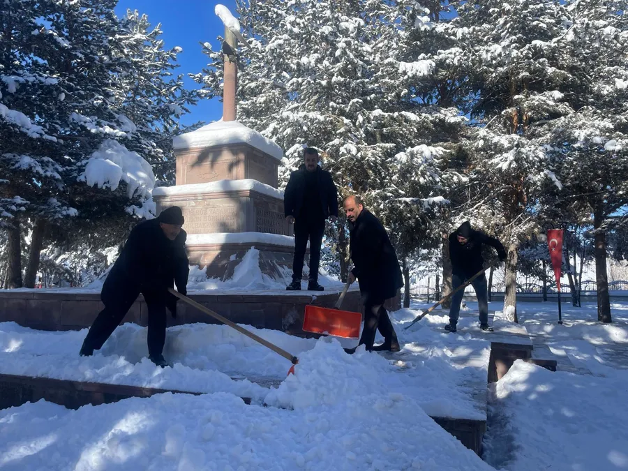İYİ Parti Erzurum İl Başkanı Ali Öğdük, il yönetim kurulu üyeleriyle birlikte Karskapı Şehitliği’ni ziyaret ederek şehitler için dualar etti, ardından şehitlik alanında kar temizliği yaptı. E-5 Karayolu’nun hemen yanında bulunan şehitlikte, giriş kapısından itibaren biriken karları ellerine aldıkları kürek ve fırçalarla temizleyen İYİ Partililer, vatandaşların takdirini kazandı.