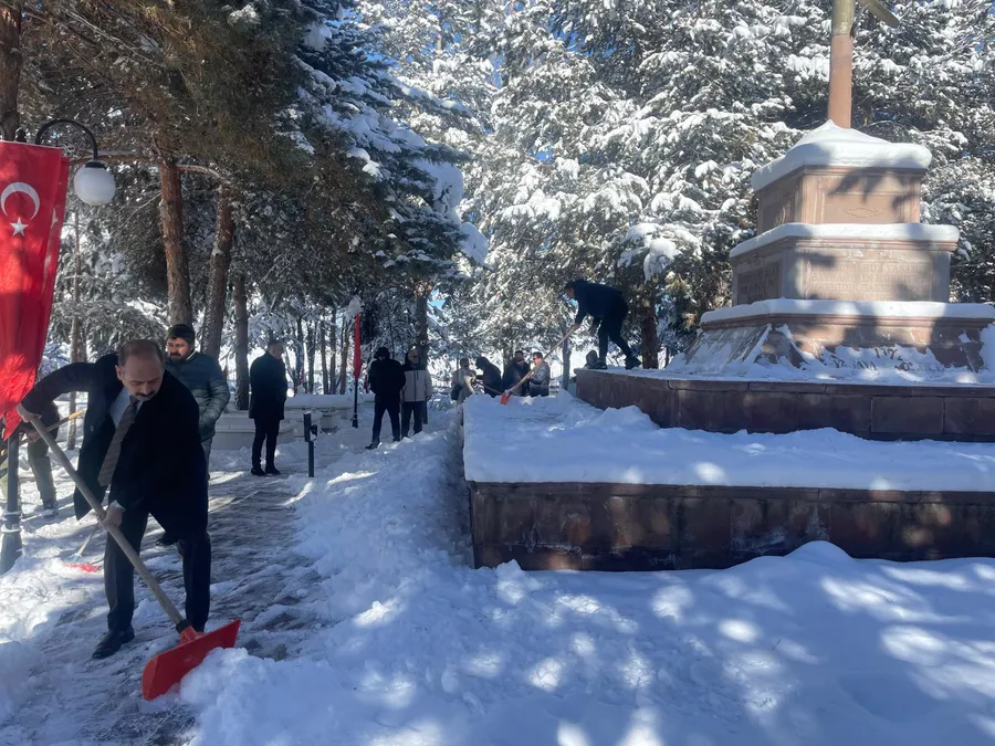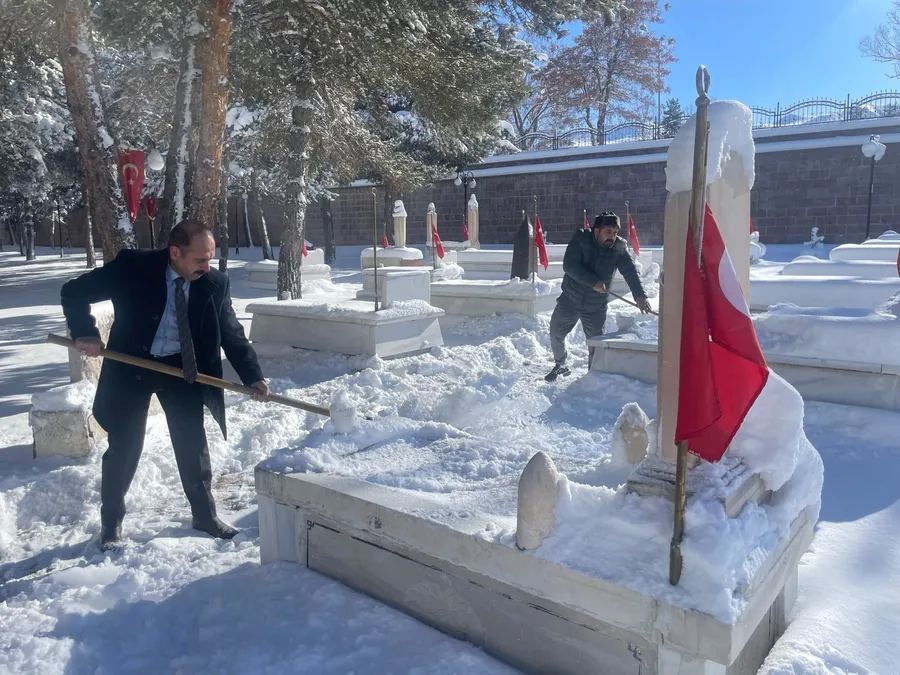 Öğdük açıklamasında, “Benim de burada bir şehidim var. Şehidimi ziyarete geldim ancak araçla şehitlik kapısına kadar gelemedik. İçeri girdiğimizde her yer karla kaplıydı. Bunun üzerine il yönetim kurulu üyelerimizle birlikte elimizi taşın altına koyduk, kürekleri aldık ve kar temizliği yaptık. En azından bizden sonra gelecek şehit aileleri zorluk yaşamasın istedik,” ifadelerini kullandı.