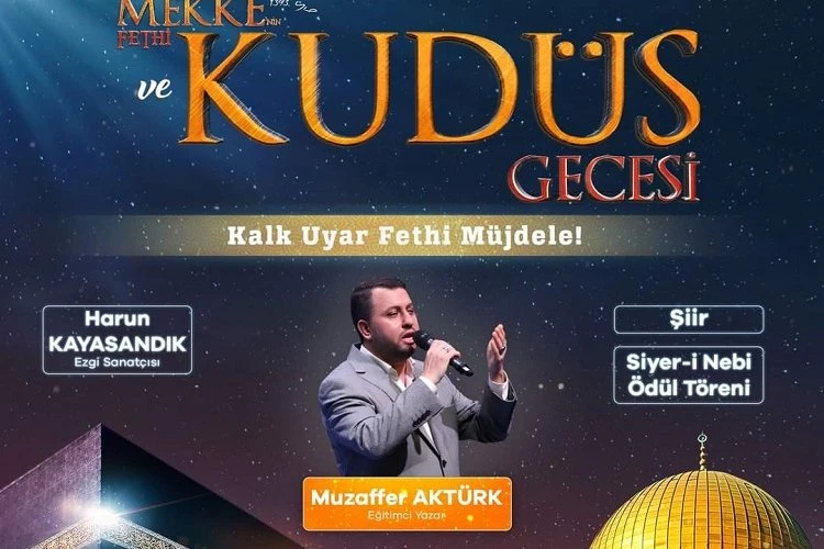 Anadolu Gençlik Derneği Kayseri Şubesi “Mekke’nin Fethi ve Kudüs Gecesi” düzenleyecek. Bugün gerçekleşecek programda yazar Muzaffer Aktürk konuşmacı olacak.