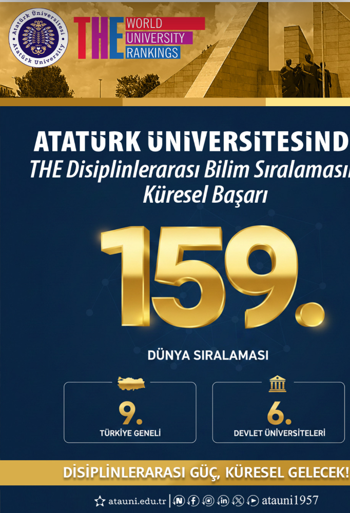 Dünyadan yüzlerce üniversitenin başvurduğu sıralamada Atatürk Üniversitesi, 159. sıraya yerleşerek küresel ölçekte önemli bir başarı elde etti. Türkiye genelinde 9., devlet üniversiteleri arasında ise 6. sırada konumlanan üniversite, ulusal ve uluslararası arenada yükselen ivmesini sürdürdü.