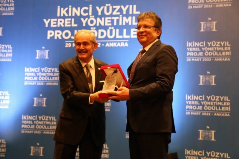 Edremit Belediye Başkanı Selman Hasan Arslan, ödülü Eskişehir Büyükşehir Belediye Başkanı Yılmaz Büyükerşen’in elinden aldı.