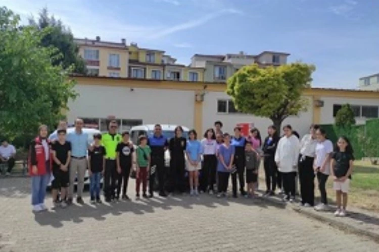 Bilinçlendirme çalışması yapılan çocuklar polis araçlarına ve motosikletine bindirilerek gezdirildi.