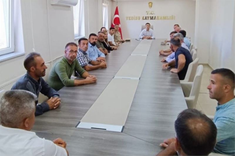 Düzenlenen toplantıya İlçe Jandarma Komutanı J. Yzb. Dr. Emre Cihan Ateş, İlçe Hekimi Dr. Oğuzhan Türktan, İlçe Tarım Müdürü Vekili Muhammed Ali Güneş ve Yedisu ilçesindeki muhtarlar katıldı.