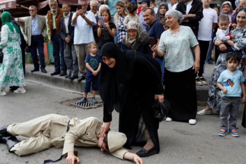 Gözyaşlarına hakim olamayan vatandaşlar, canlandırmayı ilgiyle takip etti.