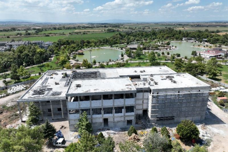 Bursa Büyükşehir Belediyesi tarafından Karacabey’e kazandırılacak kültür merkezinde çalışmalar hızlandı. Kaba inşaat ve çatı imalatlarının devam ettiği kültür merkezinin kasım ayı sonuna kadar tamamlanması hedefleniyor.