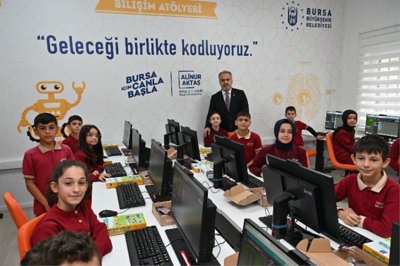 Bursa Büyükşehir Belediyesi, eğitim çağındaki çocukların robotik kodlama ve yazılım alanlarında daha iyi eğitim alabilmeleri amacıyla Milli Eğitim Bakanlığı’na bağlı okullarda ‘Bilişim Atölyeleri’ açmaya devam ediyor.