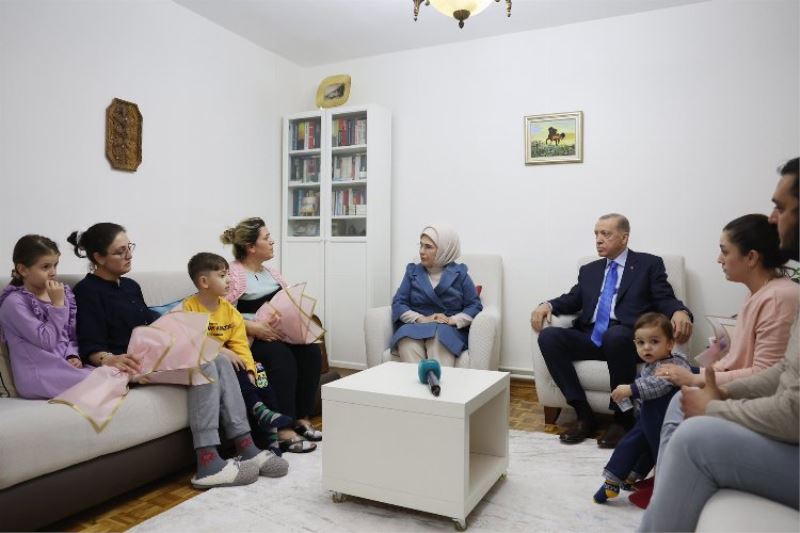 Cumhurbaşkanı Recep Tayyip Erdoğan ve eşi Emine Erdoğan, depremzede Hülya Çelebi ve ailesini Ankara'da yerleştikleri evde ziyaret etti.