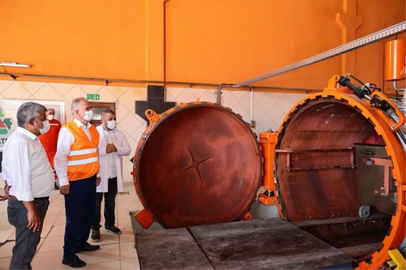 Başkan Zolan, Denizli’nin atıklarının toplanarak bertaraf edildiği Denizli Büyükşehir Belediyesi Kumkısık Katık Atık Bertaraf Tesisi içinde yer alan Tıbbi Atık Sterilizasyon Tesisinin çok önemli bir ihtiyacı karşıladığını söyledi. Tesiste evsel atıklar ve sızıntı sularının doğa ve çevreye zarar vermeden bertaraf edildiğini, aynı zamanda atıklardan elektrik enerjisi ürettiklerini kaydeden Başkan Zolan, “Burası büyük bir entegre tesis. Evsel atıkların yanında şehrimizde birçok sağlık kuruluşundan toplanan tıbbi atıklar da var. Birçok hastalık, virüs ve zararlı organizmaları barındırabilen tıbbi atıkları normal çöp gibi kabul etmiyoruz. Bu atıkları ayrı bir şekilde bertaraf etmemiz gerekiyor” dedi.