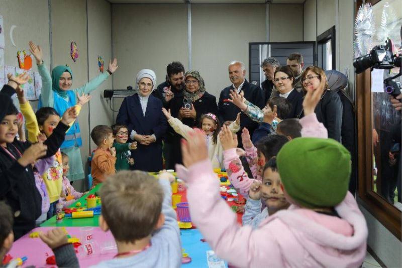 Ziyaretin sonrasında Erdoğan, depremzede vatandaşlarla çocuklara deprem sonrası psikolojik destek vermek için konteynır kentte kurulan Büyükşehir Belediyesi bünyesindeki Engelsiz Yaşam Merkezi ve GASMEK çadırlarını ziyaret etti. Çocukların kentteki aktivitelerine katılarak top oynadı.