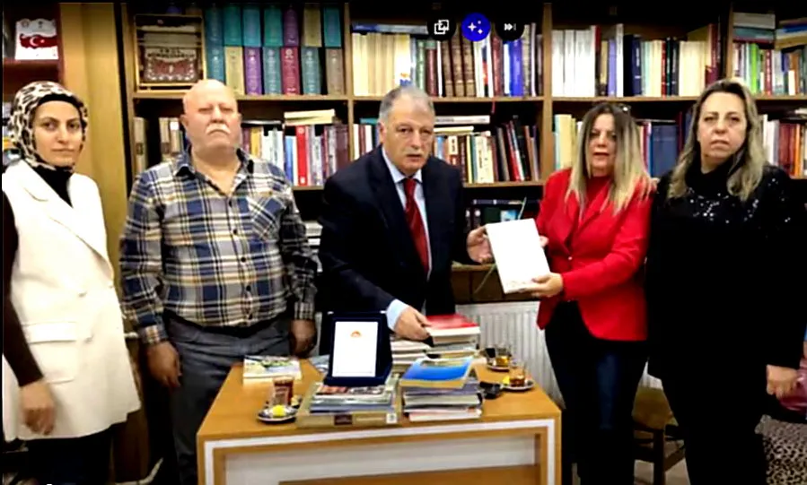 Program kapsamında Prof. Dr. Erol Kürkçüoğlu’na plaket takdim edilirken, ziyaretin sonunda Kürkçüoğlu, Ermeni mezalimini konu alan eserlerinden birini Gamze İspirli’ye hediye etti. Anlamlı buluşma, hatıra fotoğrafı çekimiyle sona erdi.