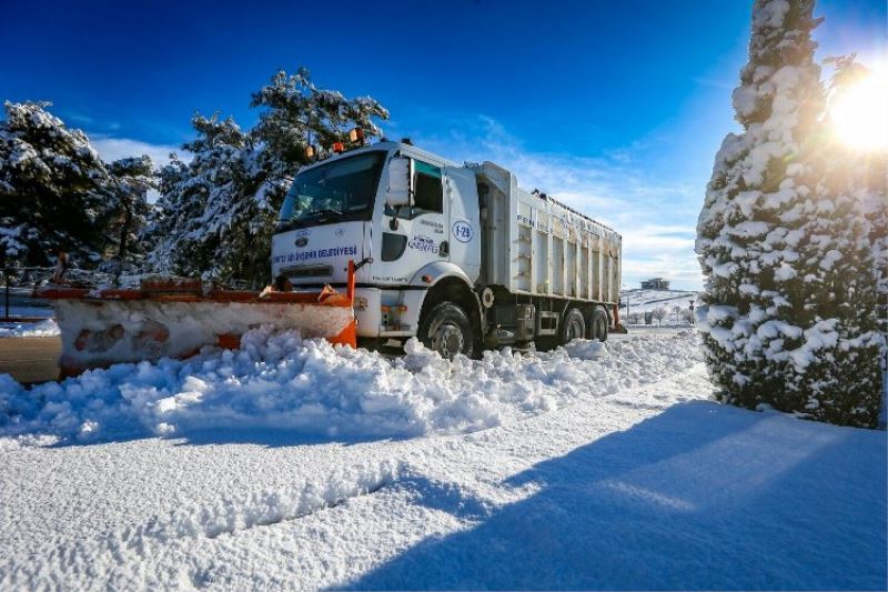 Günün ilk ışıklarıyla beraber Büyükşehir Belediyesi Kent Estetiği ve Yeşil Alanlar Daire Başkanlığı, görevlendirdiği 5 JCB, 22 araç ve 450 personelle şehir merkezinde vatandaşların olumsuzluk yaşamaması için kaldırımların kar ve buz temizliğini aralıksız sürdürüyor.