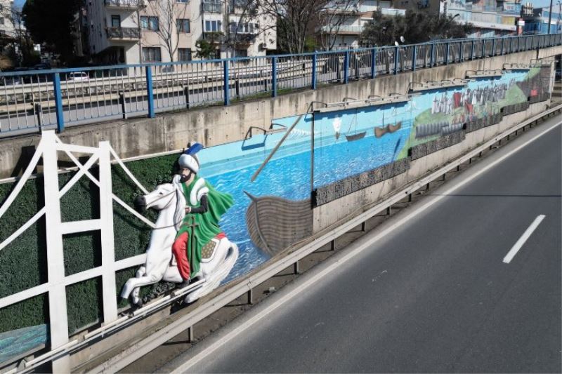 KOCAELİ (İGFA) - Gebze Belediyesi Park ve Bahçeler Müdürlüğü’ne bağlı ekipler, Fatih Sultan Mehmet Han'ın İstanbul’u fethinin yıldönümü anısına Tatlıkuyu Köprüsü'nde, ‘İstanbul'un Fethi Temalı’ grafiti çalışması gerçekleştirdi.