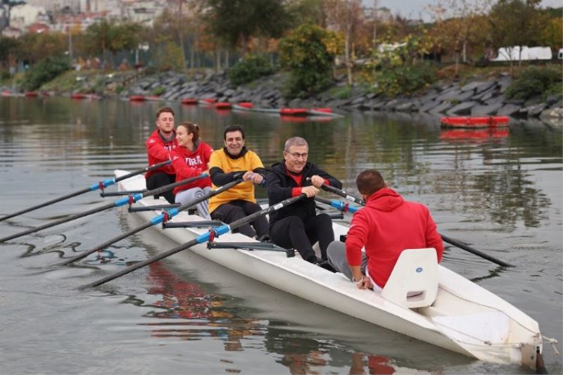 İSTANBUL (İGFA) - Eyüpsultan Belediye Başkanı Deniz Köken ve İstanbul Bilgi Üniversitesi Rektörü Prof. Dr. M. Ege Yazgan, santralistanbul Kampüsü’ndeki Vira Yatçılık ve Kürek Kulübü'nde bir araya geldi. Başkan Deniz Köken ve Rektör Prof. Dr. M. Ege Yazgan, kürek takımı ile birlikte sabah erken saatlerde Haliç’te kürek çekti.