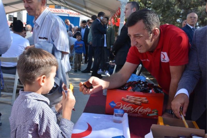 İzmir’in Buca ilçesindeki okul açılışında Türk Kızılay Buca Şubesi tarafından şehit öğretmenler için vatandaşlara çeşitli ikramlar dağıtıldı.