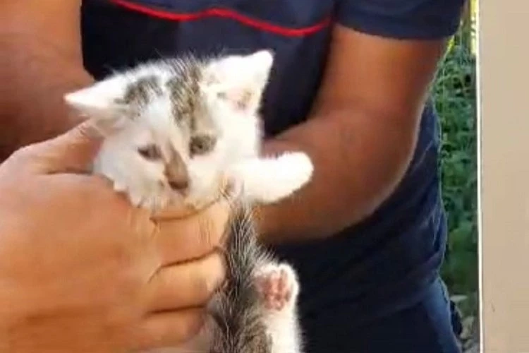 Kafası sıkışan ve orada mahsur falan yavru kedi, itfaiye ekipleri tarafından başarılı bir çalışma ile kurtarılarak annesine kavuşturuldu.