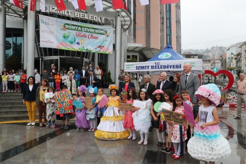 KOCAELİ (İGFA) - İzmit Belediyesi, geri dönüşüm ve çevre projeleriyle ulusal ve uluslararası anlamda dikkat çekmeye devam ederken 5 Haziran Dünya Çevre Günü kapsamında belediye önünde bir program gerçekleştirdi.