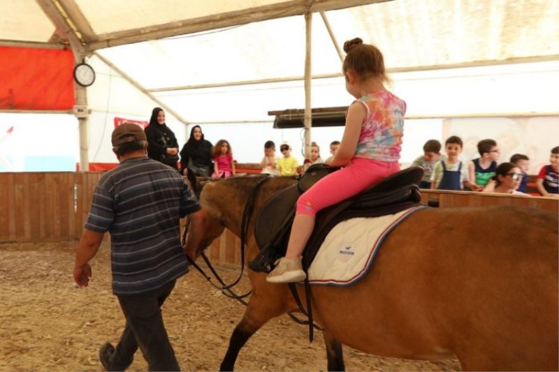 4 haftalık planlanan ücretsiz at biniş eğitimlerine devam eden 250 çocuğa katılım belgesi verilirken, çocuklara yaş gruplarına göre akıl ve zekâ oyunları kitapları da dağıtıldı.