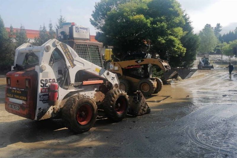 Yaşanan sel felaketi sonrası yollar ve dükkanlar sel sularının getirdiği çamurla doldu. Kocaeli Büyükşehir Belediyesi’nin Yol Bakım Timi selin vurduğu Bartın’da 3 adet bobcat iş makinesiyle yollarda çamur temizliği çalışmaları yapıyor.