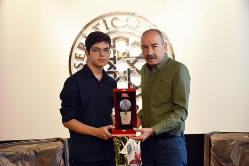Başkan Gülsoy, ziyaretin sonunda YKS Türkiye İkincisi Yusuf Selim Torun’a plaket ve çeşitli hediyeler verdi.