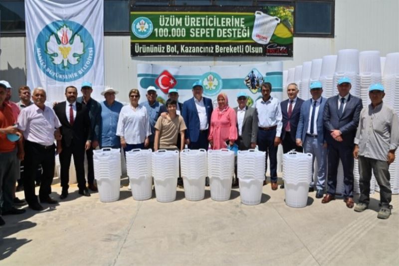 Üreticilere destek olmak amacıyla projeleri bir bir hayata geçirdiklerini belirten Başkan Ergün, “Bildiğiniz gibi bu yıl tarım ve hayvancılık için 70 milyon liralık bir bütçe ayırdık. Tarımsal sulama göletleri ve tesislerinden hayvan içme suyu göletlerine, damızlık koç ve teke dağıtımından, gübre, meyve fidanı, tohum, sepet ve kasa desteğine, kooperatiflerimize sondaj ve sulama borusu temininden zararlılarla biyolojik ve biyoteknik mücadeleye kadar onlarca projeyi hayata geçiriyoruz. Bu bağlamda üzüm üreticilerimize 3 milyon 200 bin lira bedelle aldığımız 100 bin sepet dağıtımımızı, bugün itibariyle şahsımın da katıldığı törenle Manisa merkezden başlattık. Ay sonuna kadar tüm ilçelerimizde sepet dağıtımımızı tamamlayacağız” dedi.
