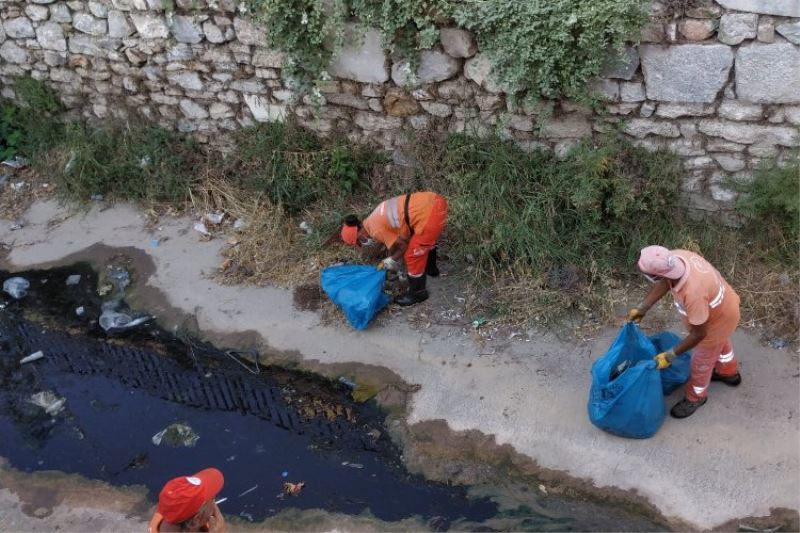 MUĞLA (İGFA) - Milas merkez mahallelerini kapsayan 4 bin 650 metre uzunluğundaki Balavca Deresi’nde temizlik çalışması yapan ekipler iki traktör dolusu çöp ve atık topladı.