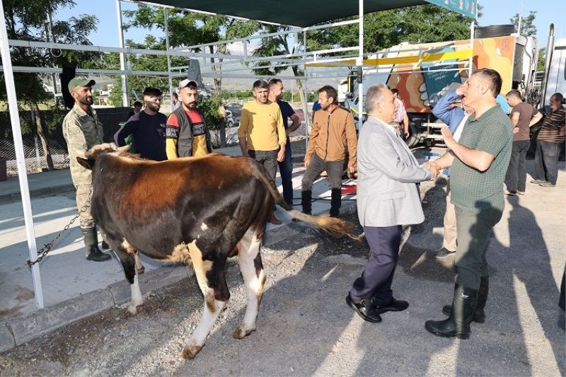 Kayseri'nin Talas ilçesine bağlı Reşadiye Mahallesinde bulunan kurban pazarına gelen ve ilk olarak kurban satıcılarına hayırlı işler dileyen Belediye Başkanı Mustafa Yalçın daha sonra belediye tarafında özel hazırlanan kurban kesim alanına geçerek kurban ibadetini yerine getiren vatandaşlar da sohbet ederek onların kurban sevincine ortak oldu.