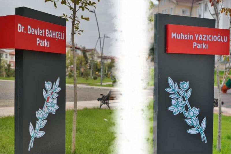 Devlet Bahçeli ve Muhsin Yazıcıoğlu’nun isimlerinin yer aldığı tabelalar Park ve Bahçeler Müdürlüğü ekiplerince parklara yerleştirilirken önümüzdeki günlerde bu parklar için açılış töreni düzenleneceği bildirildi.