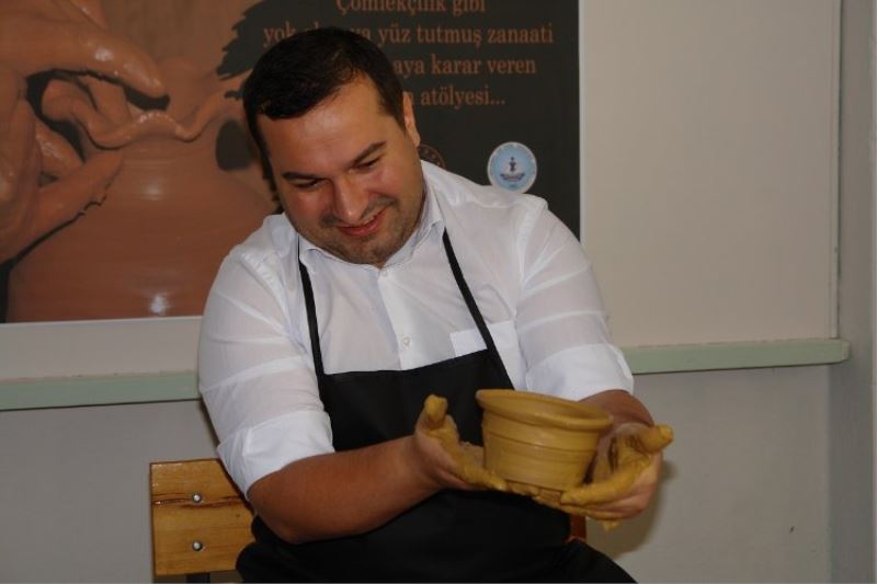 Açılış ardından Pazaryeri Kaymakamı Ferhat Altay, Belediye Başkanı Zekiye Tekin ve İlçe Milli Eğitim Müdürü Mahmut Ekinci çömlek çarkında çömlek yaptı.